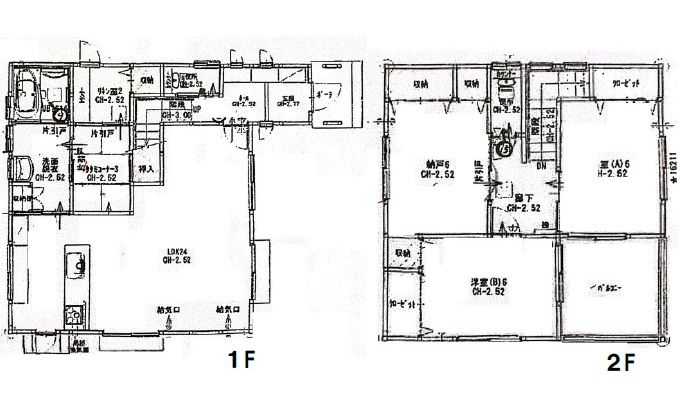 間取内容 | 1階LDK24畳1室 1階洋室6畳2室 2階S6畳1室 |