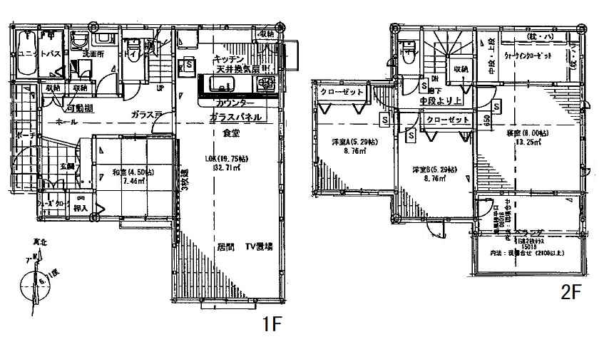 間取内容 1階LDK19.7畳1室  1階和室4.5畳1室  2階洋室8畳1室  2階洋室5.2畳2室